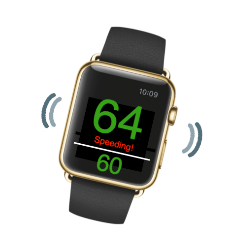 delivers an Audio and Visual and Haptic Alert from your phone to give you a warning to check your speed.